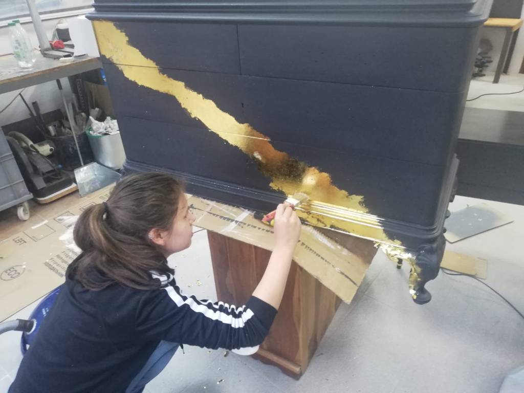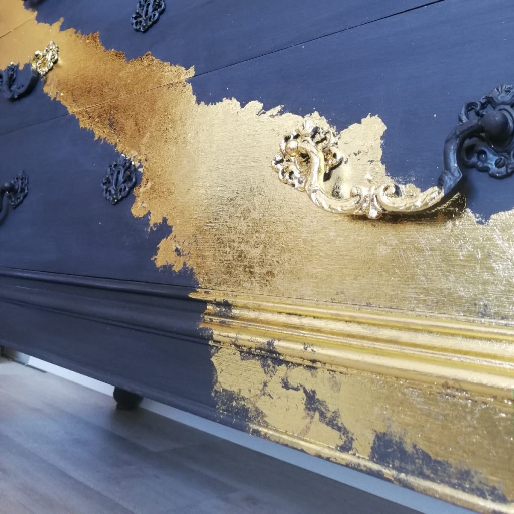 A very fun project I did together with Heidi (Reloved Furniture Mallorca). It was our first time using gold leaf. We ended up leaving the whole workshop covered with gold everywhere, but the end result of this chest of drawers made us very proud.