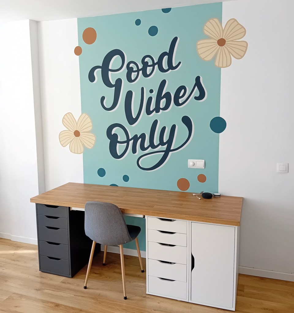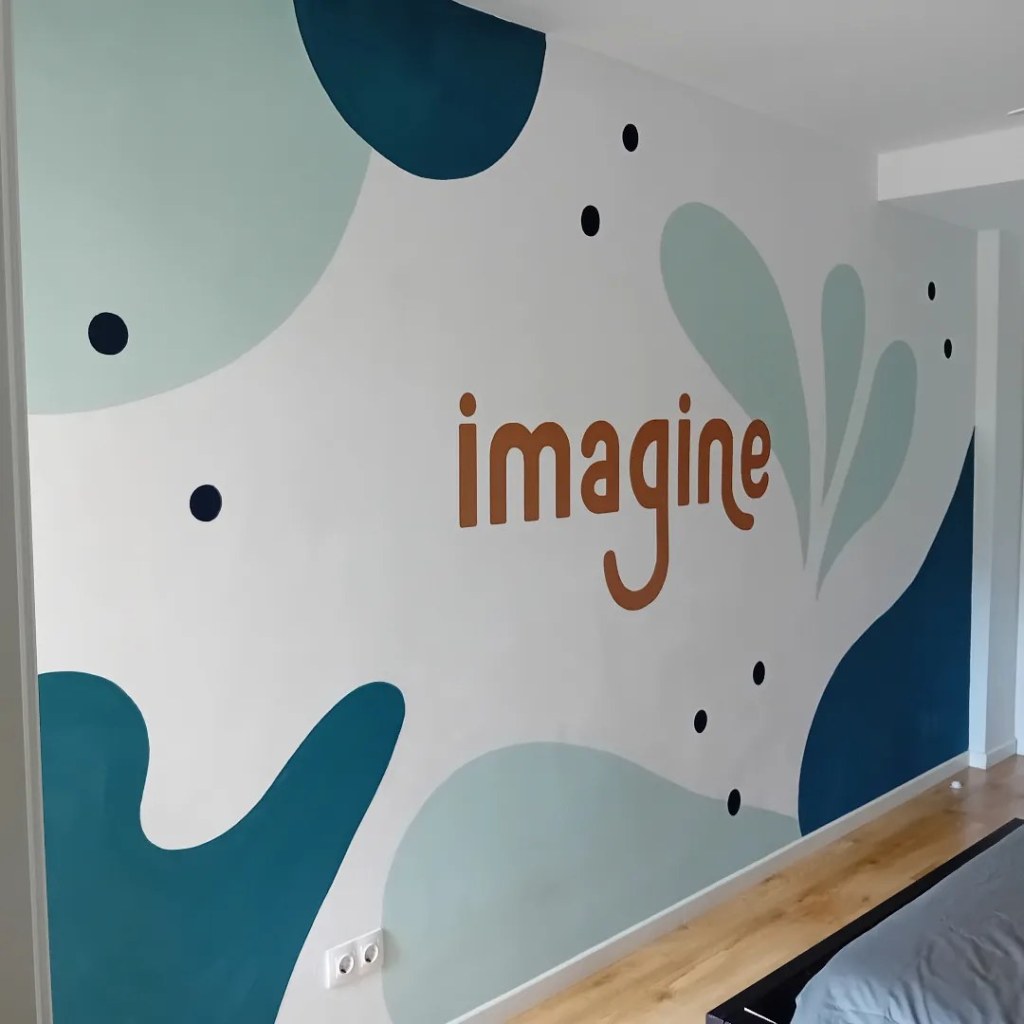 Starting with just lettering names on the wall, I got excited to do some bigger mural paintings. They really are so much fun to do! I make the designs in Procreate on the Ipad.