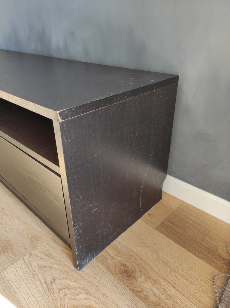 Refreshing our old and scratched IKEA TV cabinet by painting it partially white and adding some handles. A simple but necessary makeover.